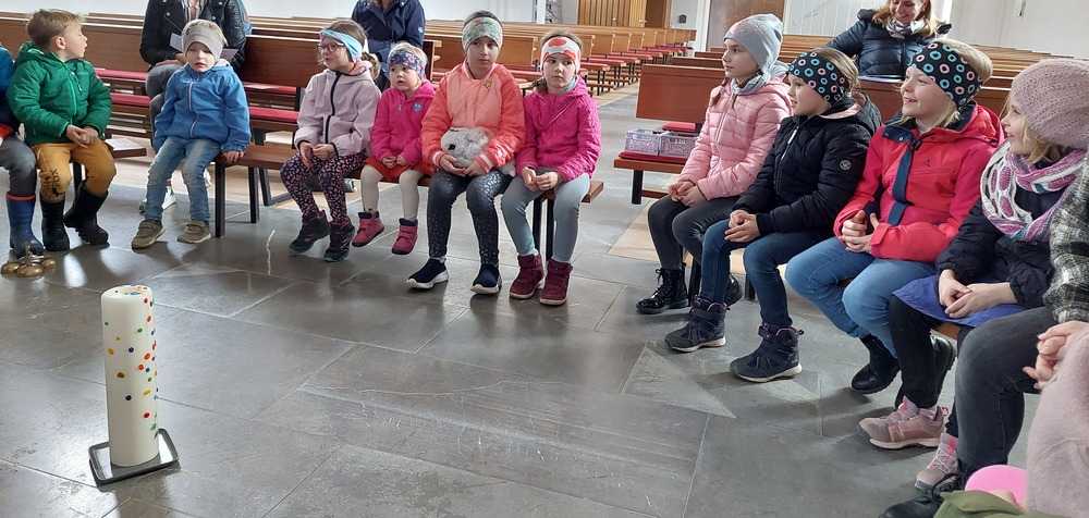 Ein Blick durch das selbstgebastelte Fernrohr und dann ging es los auf Entdeckungstour durch die Kirche. In Gruppen besuchten die Kinder die verschiedensten Stationen. Die Sakristei wurde von Dietmar Hirschbühl erklärt, Pfarrer Ratz ließ die Augen beim neuen Taufbecken, der Osterkerze sowie dem Altar strahlen. Sandra stimmte mit den Kindern die Orgel an und mit Anna wurden bei den Opferkerzen Wünsche zu Gott gesendet und den Beichtstuhl begutachtet. Zum Abschluss durften die Erstkommunionskinder noch den Kirchturm erklimmen.
